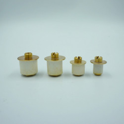 En caoutchouc, le bouchon extensible appelé aussi pneu extensible pour les diamètres supérieurs est traversé par une tige filetée sur laquelle viendra se visser la douille. Les diamètres sont nombreux et précis. 2 rondelles et 2 écrous plats permettent par serrage d'écraser le bouchon et d'augmenter ainsi son diamètre de quelques millimètres pour adhérer parfaitement à l'intérieur du goulot et réaliser un montage parfaitement stable pour le montage de l'abat-jour.
